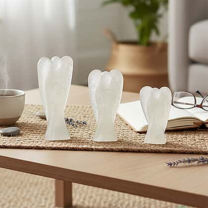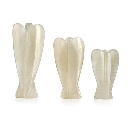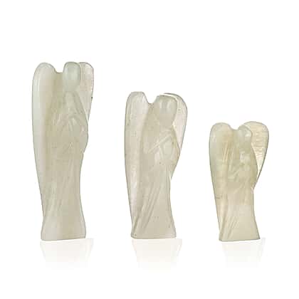 Add a calm gemstone accent to the space with this set of green aventurine angel figures, carved with flowing lines and a smooth polished finish. Each piece displays soft green tones and natural pattern variation, giving every angel its own look. The three different sizes allow layered placement on shelves, tables, or work areas. A meaningful decor and gifting choice for crystal admirers and symbolic collections.