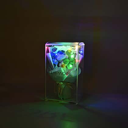 LIVMORE Handmade Knitted Flower Bouquet with 10 LED Lights (26cm) - Turquoise