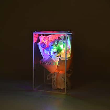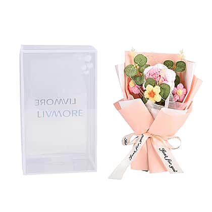 LIVMORE Handmade Knitted Flower Bouquet with 10 LED Lights (26cm) - Light Peach