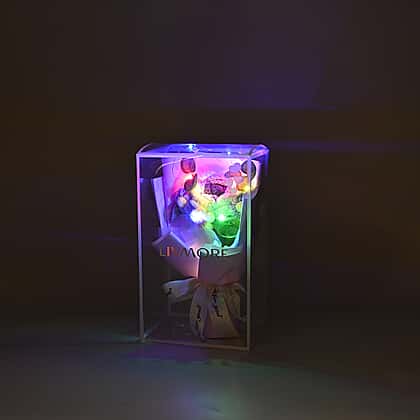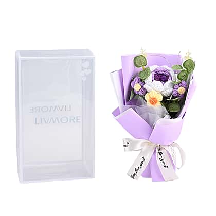 LIVMORE Handmade Knitted Flower Bouquet with 10 LED Lights (26cm) - Purple