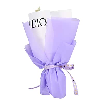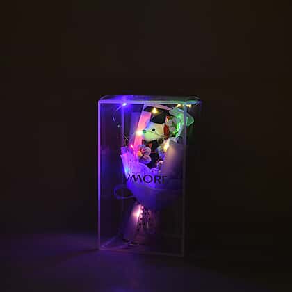 LIVMORE Handmade Knitted Flower Bouquet with Little Bear & LED Lights (26cm) - Purple