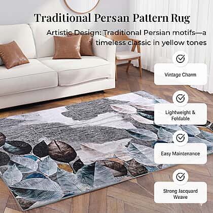 Define your space with this leaf pattern rug, designed to combine bold visual detail with everyday functionality. The black base is enhanced with layered leaf tones, creating contrast and depth that stands out while still complementing modern interiors. With a size of approximately 120 × 180 cm, it fits well in living rooms, bedrooms, or lounge areas, helping to anchor furniture and add structure to the layout. The detailed pattern introduces a natural-inspired element, bringing texture and character into the room. The surface is designed to feel soft underfoot while supporting regular daily use. Its lightweight build allows for easy placement, repositioning, or storage when needed.