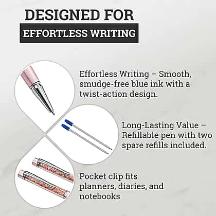 You’ll notice the gentle glow of peach opal straightaway in this lovely peach opal pen set by LIVMORE, bringing a soft, uplifting feel to your writing routine. The aluminium bodies give both pens a sleek, modern touch, while the gemstones inside add a pretty hint of colour. The matching key chains follow the same theme, making it easy to create a coordinated look or share one as a small gift. Each pen measures 11.9cm, offering a comfortable size for daily writing. With two refills provided, the set blends charm and practicality beautifully for work, home or thoughtful gifting.