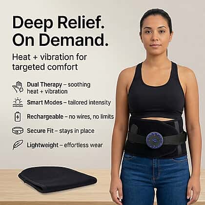 Ease daily discomfort with the LIVMORE rechargeable waist massager, designed to support your lower back while delivering targeted heat and vibration therapy. Made from soft polyester, this adjustable wrap fits comfortably around the waist, offering gentle compression and support. With five vibration modes and five heat settings, this black device allows you to personalise your experience for effective relief. The built-in control panel ensures easy operation, while the rechargeable design provides freedom of movement. Ideal for long days, sitting or light activity, it helps soothe tension, improve circulation and restore comfort, helping you feel more relaxed and in control throughout your routine.