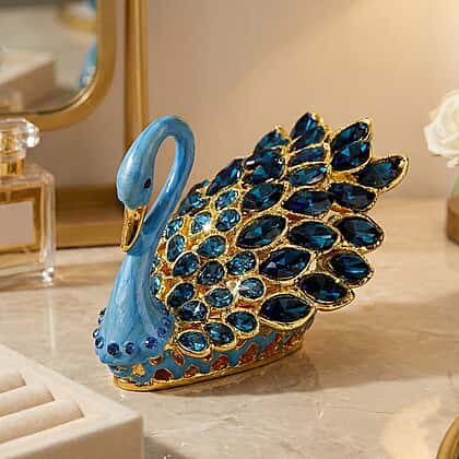 Keep your jewellery beautifully organised with the LIVMORE Swan Trinket Box in blue. This exquisitely crafted trinket box features a graceful swan design, adorned with sparkling crystals that shimmer in the light. The vibrant blue colour and intricate detailing make it a standout decorative piece for any space, while the ample storage inside is perfect for rings, earrings, and other small treasures. Its stunning design brings a touch of luxury to your home, making it an ideal gift or a charming addition to your collection.