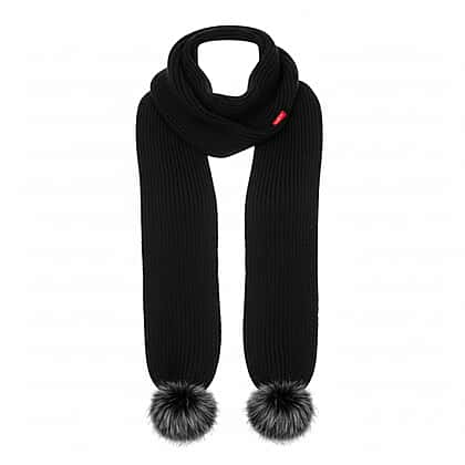 Long Knitted Pom Pom Scarf - Black