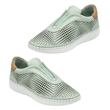 It’s easy to love the Lotus Women’s Lorena Breathable Leather Trainers when you want comfort that still looks pulled together. The premium leather upper features abstract punch detailing that feels light and airy, while the mint shade adds a soft pop of colour to everyday styling. Blanket stitching around the crisp white sole gives a crafted touch, and the contrasting heel tab lifts the whole design. With its cushioned ankle collar and elasticated front panel, this slip-on shoe is made for days when you want to move without fuss but still feel confident and effortlessly stylish.