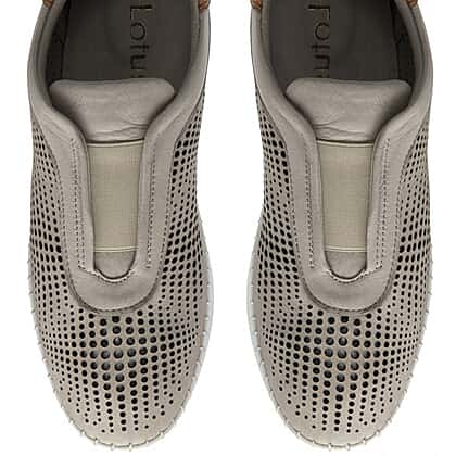 Stepping into the Lotus Women’s Lorena Breathable Leather Trainers in stone feels like choosing comfort without compromising your look. The neutral tone pairs beautifully with casual outfits, and the abstract punch detailing adds a modern twist that keeps the shoe airy throughout the day. Blanket stitching along the sole offers a handmade feel, while the contrasting heel tab gives a little lift in style. Designed as a slip-on, it features a cushioned ankle collar and stretchy front panel to support movement, making it ideal for women who want everyday ease with a trainer that still feels considered.