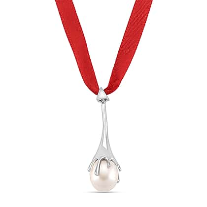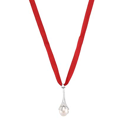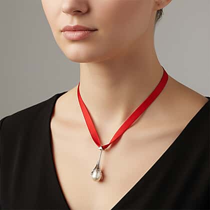 Lucy Q-Drop Bauble Collection White Shell Pearl Pendant with Red Ribbon