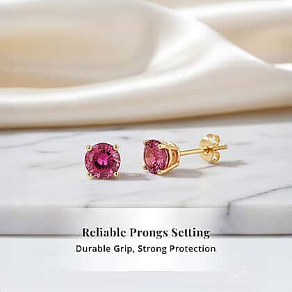 LUXORO 14K Yellow Gold AAA Rubellite Solitaire Stud Earring, 1.10 Ct.