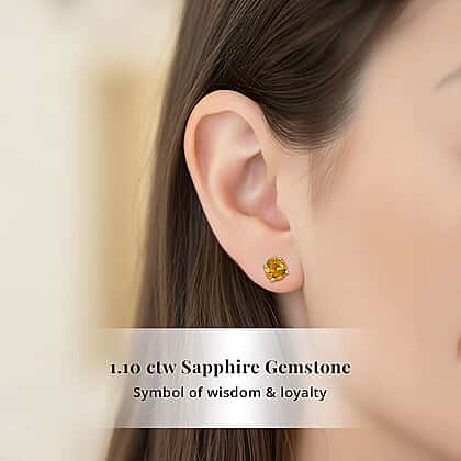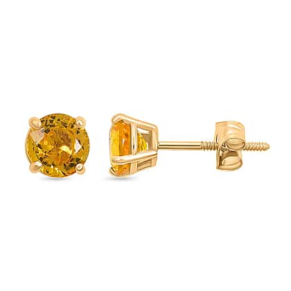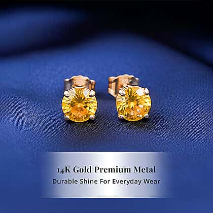 LUXORO 14K Yellow Gold AAA Yellow Sapphire Solitaire Stud Earring, 1.10 Ct.