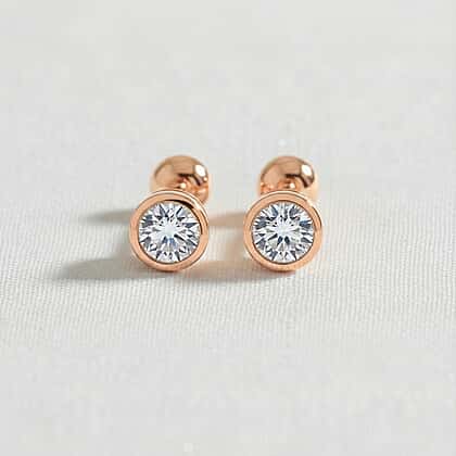 LUXURIANT 1 Ct. Lab Grown Diamond Poke Free Solitaire Stud Earring with Ball Back in 18K Vermeil Rose Gold Plated Sterling Silver