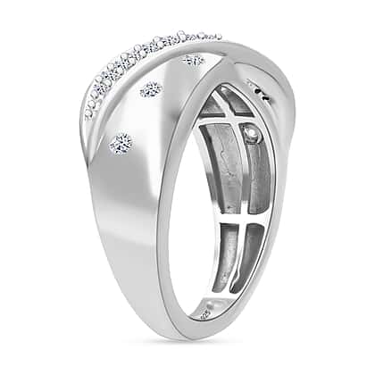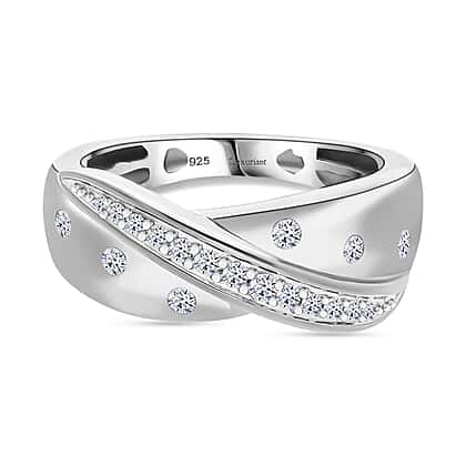 Sleek, radiant, and timeless, this lab-grown diamond ring is a striking blend of simplicity and sparkle. Set in rhodium overlay sterling silver, the design features scattered round brilliant cut lab-grown diamonds and a sweeping pavé crossover band that adds a sense of fluidity. The lab-created diamonds are robust and shimmer with clarity and fire, mirroring the allure of natural stones. The hypoallergenic metal is gentle on sensitive skin, tarnish-resistant, and designed for everyday elegance. With a contemporary silhouette and a polished finish, this ring is more than a piece of jewellery; it is a lasting expression of beauty.