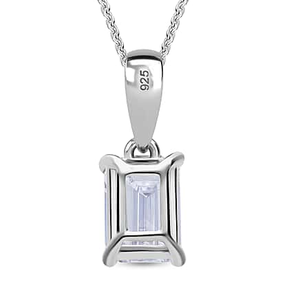 LUXURIANT 1 Ct. Lab Grown Diamond Solitaire Pendant with Chain in Rhodium Overlay Sterling Silver, 20 Inch