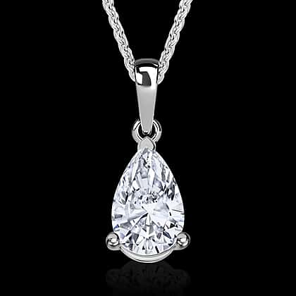 LUXURIANT 1 Ct. Lab Grown Diamond Teardrop Solitaire Pendant with Chain (Size 20) in Rhodium Overlay Sterling Silver (SI-GH)
