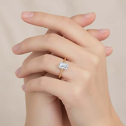LUXURIANT 1 Ct. Lab Grown Diamond Emerald-Cut Solitaire Ring in 18K Vermeil Yellow Gold Over Sterling Silver (SI-GH)
