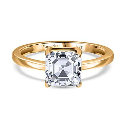 LUXURIANT 2 Ct. Lab Grown Diamond Asscher Cut Solitaire Ring in 14K Yellow Gold SGL Certified (VS-EF)