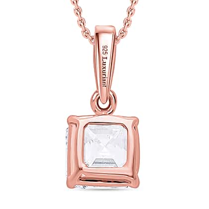 LUXURIANT Asscher Cut Lab Grown Diamond Pendant with Chain (Size 18/20) in Vermeil Rose Gold Plated Sterling Silver