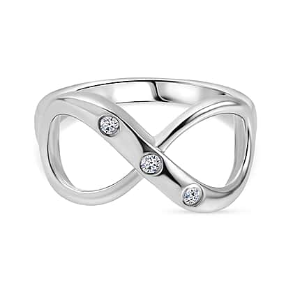 Experience the beauty of flowing infinity design with this ring, elevated by bright lab-grownlab-grown diamonds set along the gentle curve. The stunning infinity ring, also known as the eternity ring, symbolising never-ending love and commitment. The open loops create a soft, fluid shape that moves naturally with the hand, making the symbol feel alive and expressive. Each diamond is chosen for clarity and shine, adding a subtle glow to the polished surface. Crafted in hypoallergenic 925 sterling silver, this piece ensures durability and comfort for sensitive skin. The glossy rhodium overlay offers a mirror-like shine and a polished finish. The smooth band sits comfortably and feels light on the finger. A meaningful piece that brings the idea of constant connection into a modern, everyday style.