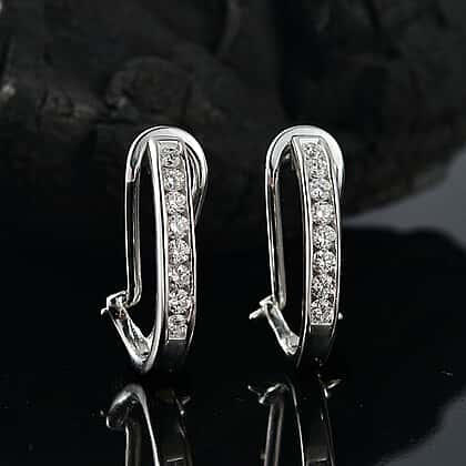 Add a refined edge to your everyday look with these lab grown diamond J hoop earrings. Expertly crafted in rhodium overlay sterling silver, they’re hypoallergenic, tarnish-resistant, and perfect for sensitive skin. The sleek half-hoop silhouette features a graceful curve with a channel of brilliant SI G/H lab created diamonds—sparkling with the same fire and clarity as natural stones but kinder to the planet. The secure clip fitting ensures easy wear without compromising on comfort. Whether you're dressing for the office or a dinner out, these earrings offer the perfect balance of subtle luxury and contemporary charm.
