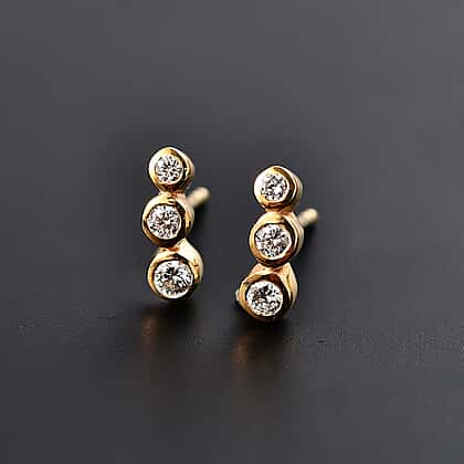 LUXURIANT Lab Grown Diamond Stud Trilogy Earring in 18K Yellow Gold Vermeil Sterling Silver (SI/G-H)