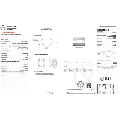 LUXURIANT 5 Ct. Rectangular Lab Grown Diamond, IGI Certified 12.33 x 8.52mm