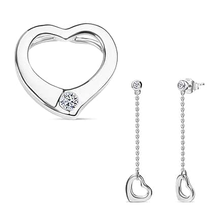 Luxuriant Gift of Love Christmas Edition - Lab Grown Diamond Solitaire Heart Pendant & Drop Heart Earring in Rhodium Overlay Sterling Silver (SI G-H)