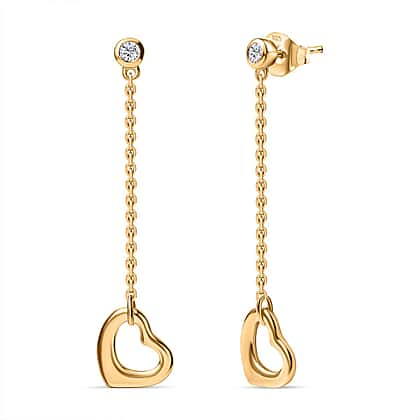 Luxuriant Golden Heart Christmas Gift Set - Lab Grown Diamond Solitaire Heart Pendant & Drop Heart Earrings in 18K Vermeil Yellow Gold Plated Sterling Silver (SI G-H)