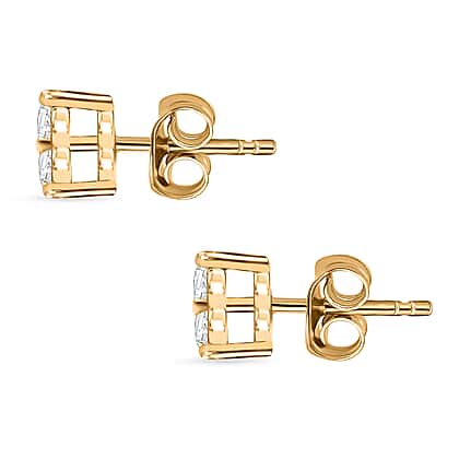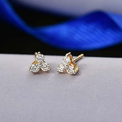 LUXURIANT Lab Grown Diamond 3 Stone Stud Push Post Earring in 18K Vermeil Yellow Gold Plated Sterling Silver (SI-G-H)