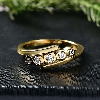 Elevate everyday style with this gold ring set with bright lab-grown diamonds arranged across a gently curved front. The warm gold tone works beautifully with the soft glow of each stone, creating a look that feels refined and radiant without overpowering the hand. Crafted in hypoallergenic 25 sterling silver, this piece ensures durability and comfort to sensitive skin. The 18K vermeil yellow gold plating offers a warm tone, shine, and a polished finish. The smooth band provides an easy, comfortable fit that suits daily wear and special moments alike. Each diamond is placed to capture light from every angle, giving the ring a soft shimmer. A polished choice crafted to add shine to any collection.