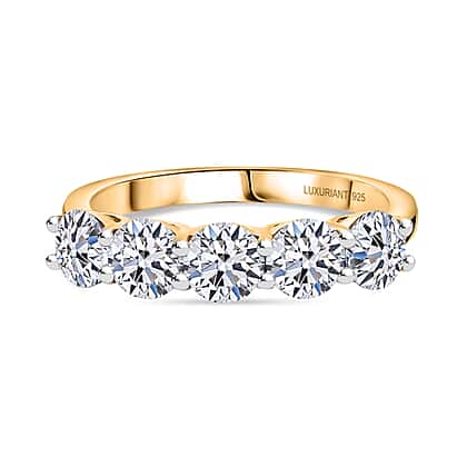 An icon of eternal brilliance, this lab grown diamond 5-stone ring celebrates unmatched brilliance with exceptional design and craftsmanship. The piece is handcrafted in 18K yellow gold vermeil plating on 925 sterling silver. The piece offers durability and a lavish finish. The ring features five lab-grown diamonds, each precision-cut to reveal extraordinary fire and clarity. The stunning half-eternity arrangement lets each diamond capture and reflect light beautifully, creating a luminous band of radiance that sits gracefully on the finger. The hypoallergenic nature of the metal offers comfort and security for sensitive skin. Modern yet timeless, it's a design that effortlessly blends sustainability, luxury, and meaning.