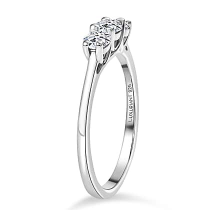 Celebrate forever love and commitment with this trilogy ring, featuring three captivating lab grown diamonds at the centre. The trilogy design represents the past, present, and future of a relationship, making it a meaningful piece of jewellery. Crafted in premium rhodium overlay on 925 sterling silver offers a rich, warm glow that complements the brilliance of the stones. The metal has hypoallergenic properties making it safe and secure for sensitive skin. The mirror-like finish with dazzling sparkle of diamond makes the piece visually appealing. Experience the beauty of a trilogy ring with this luxuriant band ring that reflects your love and commitment.