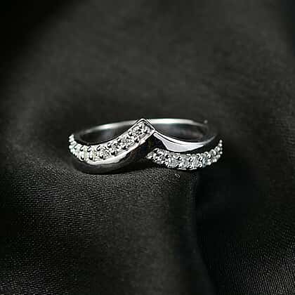 Luxuriant Lab Grown Diamond Chevron Knife Edge Ring in Sterling Silver