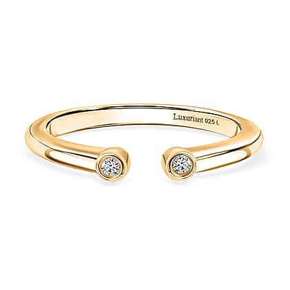 Graceful and versatile, the lab grown diamond open ring brings together contemporary style with a timeless touch of brilliance. Featuring two bezel-set lab grown diamonds that face one another at the open ends, the design symbolises balance, duality, and connection. The slim band is finished in 18K vermeil yellow gold over sterling silver, offering a hypoallergenic, tarnish-resistant surface that stays radiant for years. Lab grown diamonds provide the same sparkle, fire, and strength as natural ones, making them both sustainable and lasting. Worn alone or stacked, this elegant piece makes a meaningful addition to your jewellery collection.