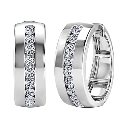 LUXURIANT 1 Ct. Lab Grown Diamond Hoop Earring in Rhodium Overlay Sterling Silver (SI-GH)