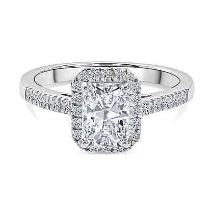 Revel in the refined brilliance of lab grown diamond with this stunning halo ring. The ring showcases an emerald cut lab grown diamond at its heart, framed by a halo of small lab grown diamonds, adding extra shine and brilliance. Meticulously crafted in premium 925 sterling silver with rhodium overlay, this piece offers mirror-like shine and polished finish. The polished finish complements the clarity of the diamonds, while the setting maintains a secure and well-defined profile. Suitable for special occasions or meaningful moments, it presents a classic design with a contemporary finish. Ready to capture attention with this stunning halo ring that shines with every movement.