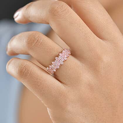 Step into a beautifully crafted cluster design that brings together soft pink lab-grown diamonds on a warm rose-toned sterling silver band. The raised arrangement of the stones creates depth and a complete shimmering look that catches gentle light from every angle. Each diamond is chosen for its colour and clarity, forming a style that feels expressive and radiant. Crafted in hypoallergenic 925 sterling silver, this piece ensures durability and comfort to sensitive skin. The 18K vermeil rose gold plating provides a lasting shine and a a rose-tone finish. The smooth inner band ensures lasting comfort, while the sculpted detailing along the setting adds a refined touch that completes the piece with a rich finish.