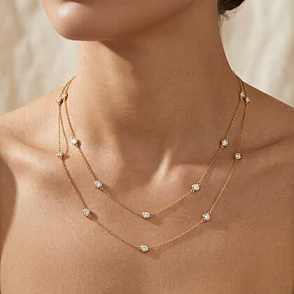 Bring warmth and subtle shine to your jewellery collection with this Luxuriant Lab Grown Diamond Necklace with Chain in Yellow Gold Tone, designed for effortless, everyday styling. Delicately spaced lab-grown diamonds are set along a fine chain, creating a soft, floating effect that catches the light with gentle movement. The layered look adds depth while remaining lightweight and comfortable, making it ideal for both solo wear and layering with other pieces. Finished in 18K vermeil yellow gold plating, it offers a rich, radiant tone that enhances the brilliance of each stone. A versatile piece that adds a touch of shine to both everyday and occasion looks.