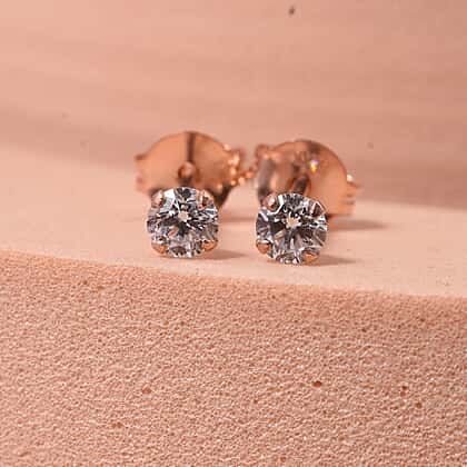 LUXURIANT Lab Grown Diamond Solitaire Stud Earring with Push Back in Rose Gold Plated Sterling Silver (SI-GH)