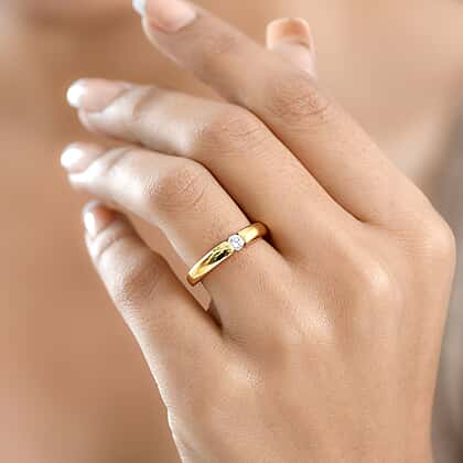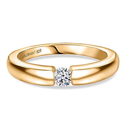 For those drawn to clean lines, simple settings, this modish Luxuriant lab grown diamond ring will certainly appeal to you. It features a sleek, modern band that gently curves inward to frame the single round-cut diamond. It renders the stone a floaty, ethereal feel. This solitaire diamond ring has a minimalist design and creates a clean, polished look. Crafted in 18K vermiel yellow gold plated sterling silver, it features a sleek, smooth shank. Thus, this ring is perfect for those who prioritise comfort over opulent designs.