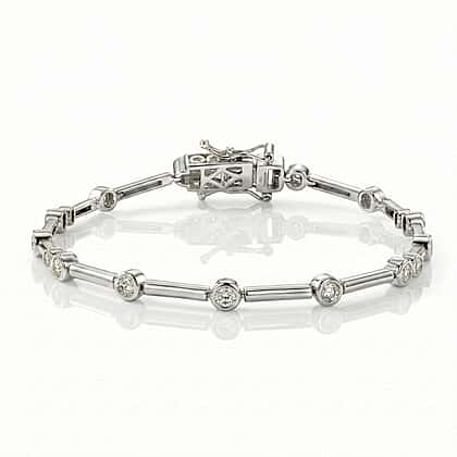 LUXURIANT 1 Ct. Lab Grown Diamond Station Bracelet (Size 7.5) in Rhodium Overlay Sterling Silver (SI/GH)