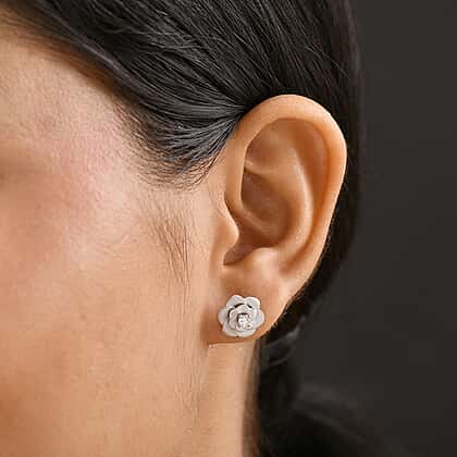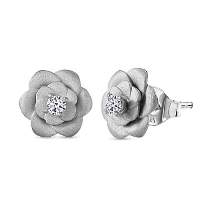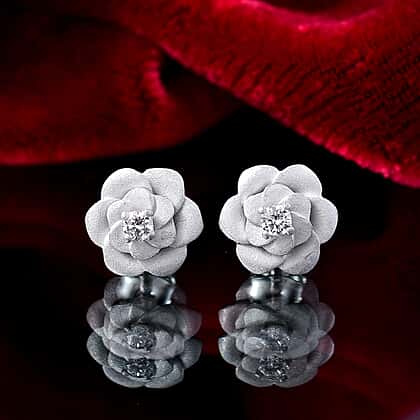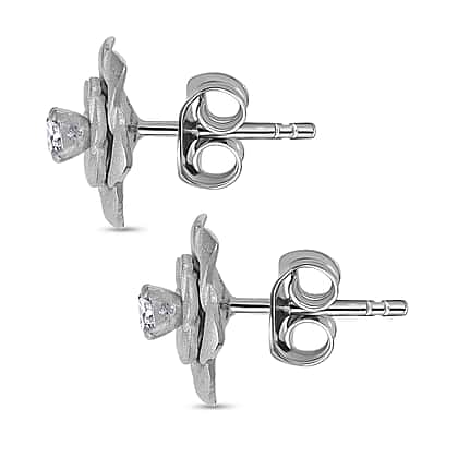 Luxuriant Lab Grown Diamond (SIG/H) Floral Stud Push Back Earrings in Sterling Silver