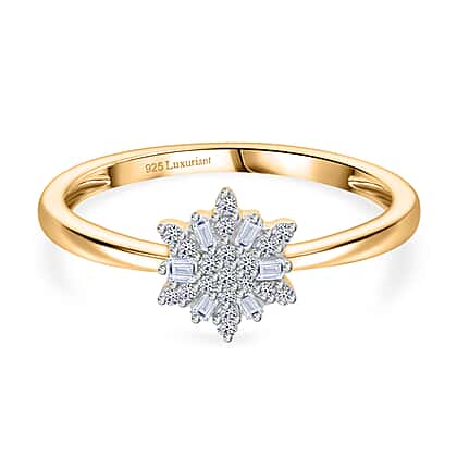 Gorgeous and eye-catching, this snowflake-inspired design ring showcases the beauty of lab-grown diamonds. Features round and baguette cut lab-grown diamonds, enhancing the ring’s unique design. The contrast of shape and design adds beauty to the ring. Expertly crafted in hypoallergenic 925 sterling silver, this ring offers durability and enduring shine. The premium 18K vermeil yellow gold plating offers warm tone shine and luxurious appeal. Perfect for any occasion, it adds a brilliant touch to your jewellery collection, offering both sophistication and style in one piece.