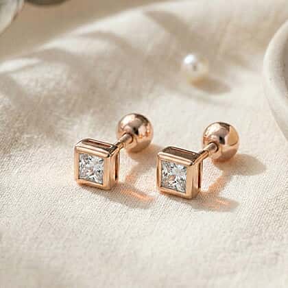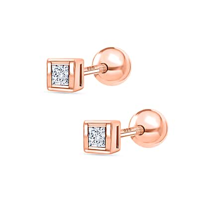 Luxuriant SI-GH Lab Grown Diamond Earring with Ball Screw Back in 18K Vermeil Rose Gold Plated Sterling Silver