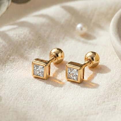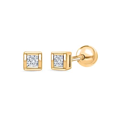 Luxuriant SI-GH Lab Grown Diamond Earring with Ball Screw Push Back in 18K Vermeil Yellow Gold Plated Sterling Silver