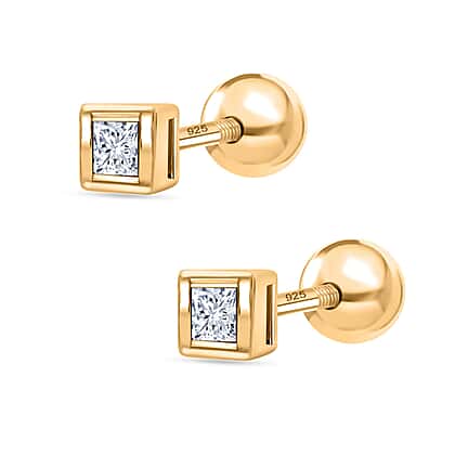 Luxuriant SI-GH Lab Grown Diamond Earring with Screw Back in 18K Vermeil Yellow Gold Plated Sterling Silver
