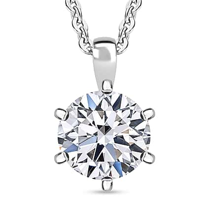 Luxuriant Lab Grown Diamond (SI-GH) Solitaire Pendant with Chain (Size 20) in Rhodium Overlay Sterling Silver 1.00 Ct.