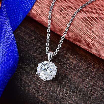LUXURIANT 1 Ct. Lab Grown Diamond Solitaire Pendant with Chain (Size 20) in Rhodium Overlay Sterling Silver (SI-GH)