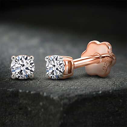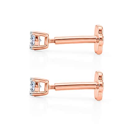 Luxuriant SI-GH Lab Grown Diamond Solitaire Earring with Screw Back in 18K Vermeil Rose Gold Plated Sterling Silver 0.20 Ct.
