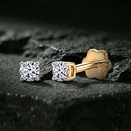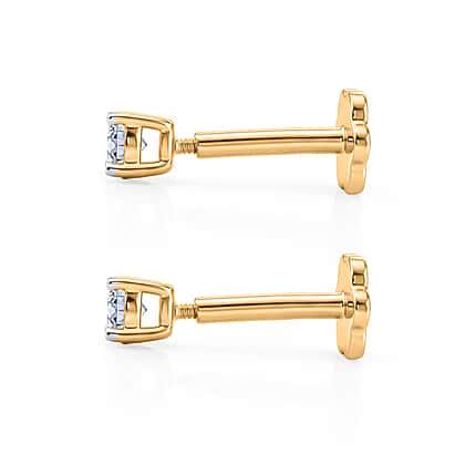 Luxuriant SI-GH Lab Grown Diamond Solitaire Earring with Screw Back in 18K Vermeil Yellow Gold Plated Sterling Silver 0.20 Ct.